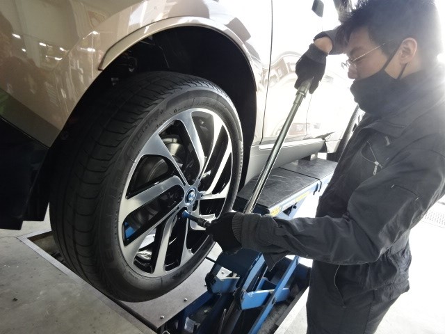 BMW i3にワイドトレッドスペーサー取り付け作業です。