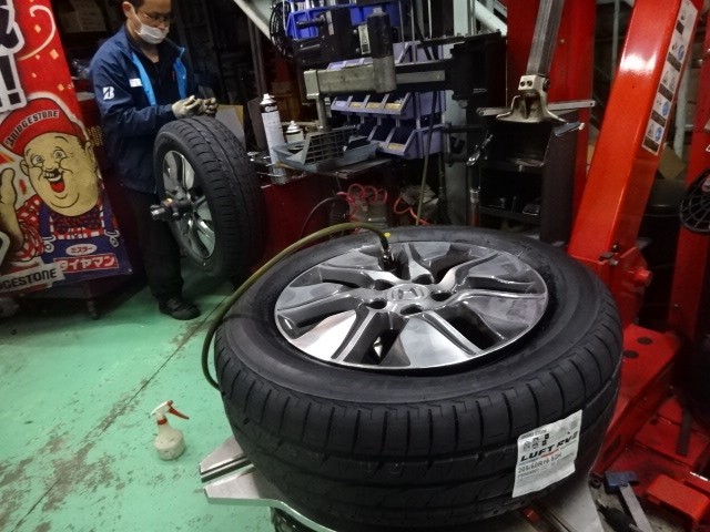 業者様からの依頼で、近所のダイハツさんに「車検出しているのでタイ交換しといて」との事 喜んで~