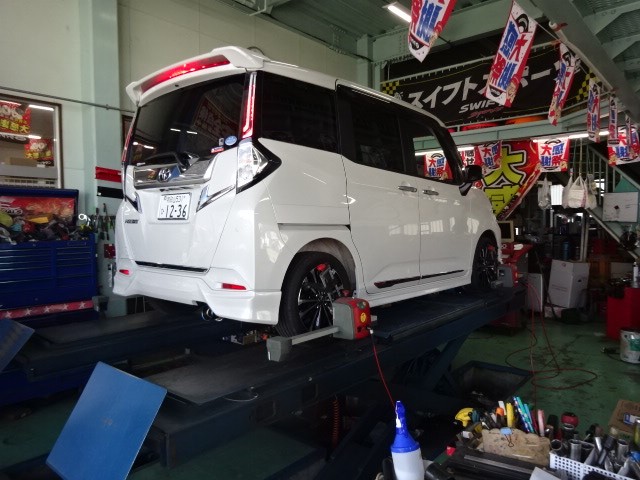 ディーラー様からの依頼で、ルーミーのロールを抑えて欲しいとKYBのSRスペシャルを取り付けます。