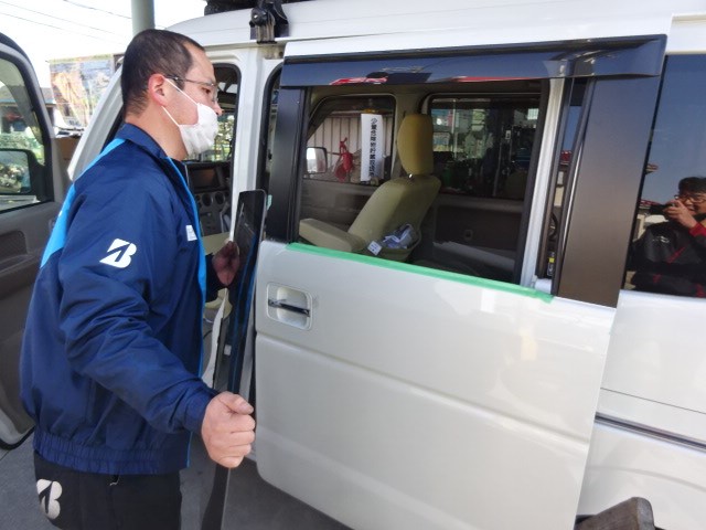 エブリイワゴンのお客様、「突然サイドガラスが割れた」と飛び込んで来まして・・・