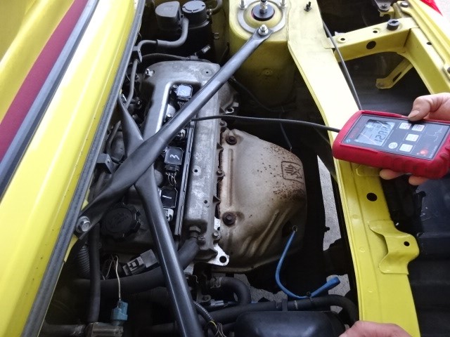 先日から預かっているMR-Sのイグニッションコイルの交換です。ついでに圧縮も計っておきます。