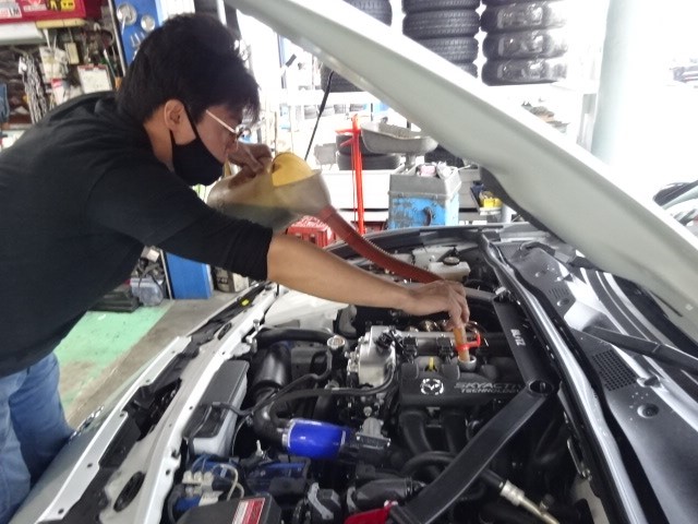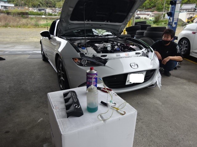 常連さんの紹介で綺麗なND5Cロードスター7万キロ走行したので、ワコーズのレックスの依頼