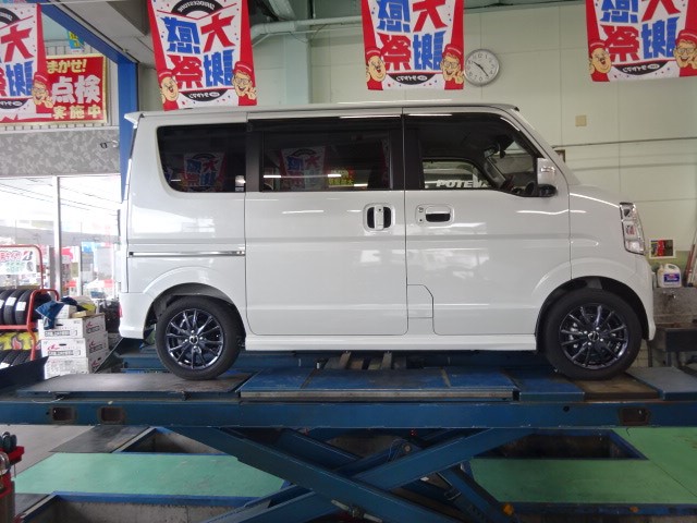 現行エブリイワゴンて難しく車検対応のホイール探すのに苦労しました。