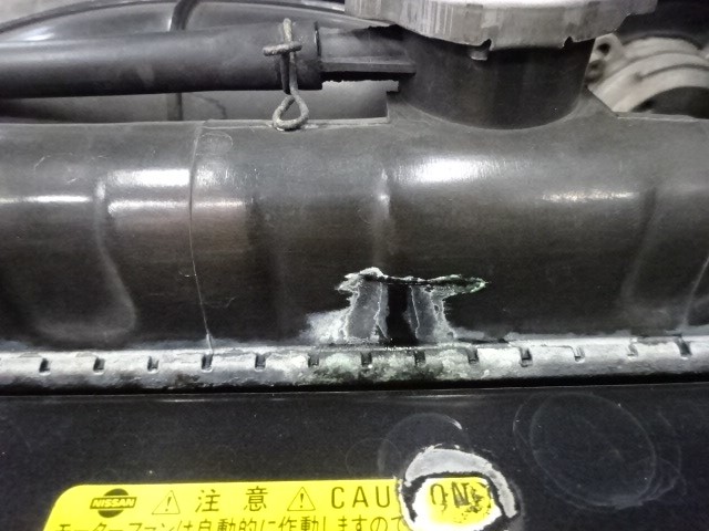経年劣化ですね。ラジエーターのアッパータンクからクーラント漏れ発見(流石です工場長)
