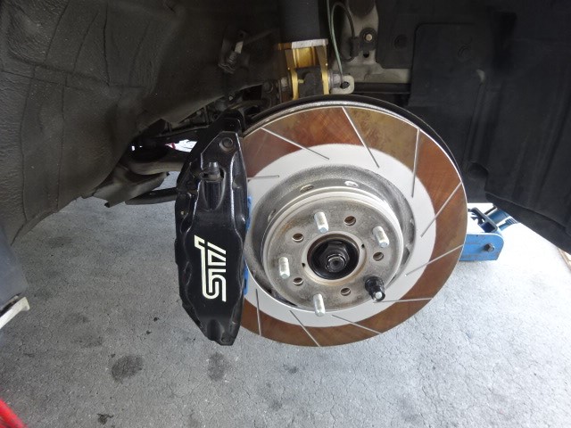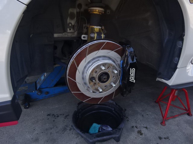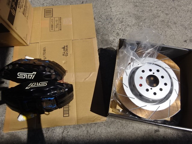 去年から頼まれていた、レボーグにSTIのキャリパー取り付けします。