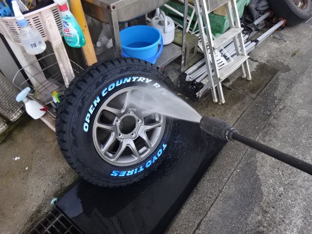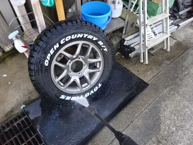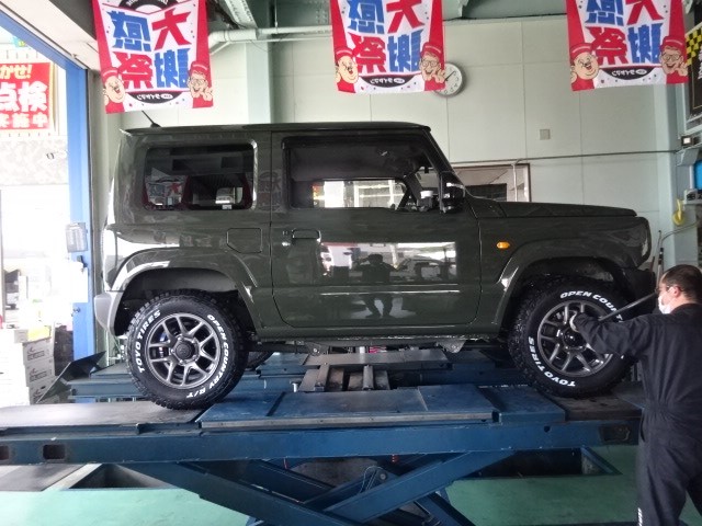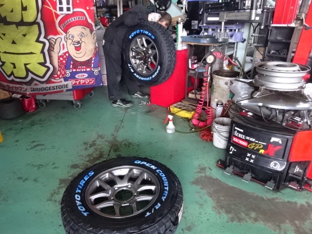 新車のJB64ジムニー走行9kmに品薄で貴重なオープンカントリーRT185/85R16を組みます。