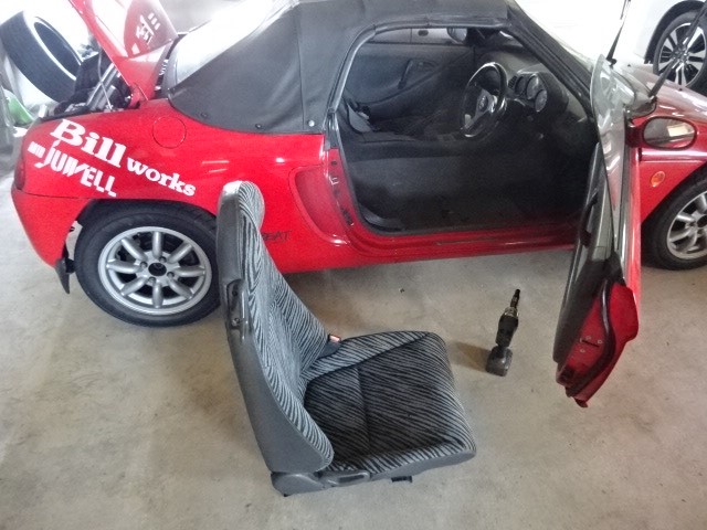 で、「ビートの純正シート貸して」と頼まれ、ぼくの愛車から外してお貸しすることになりました。
