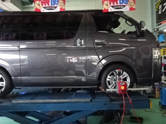 業者様からの依頼で、新車のハイエースのアライメント調整です。
