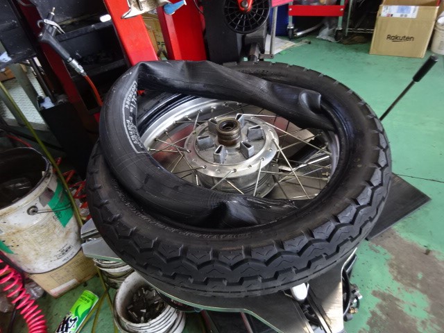ヤマハSR500のホイール交換です。チューブが、入っているので、難易度が高いです。