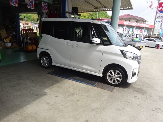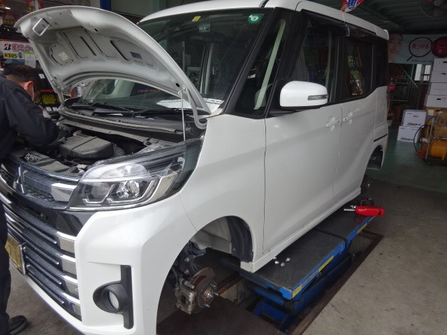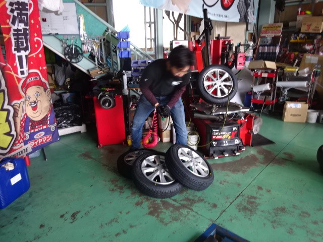 開店前から お待ちのEKスペースのタイヤ交換です。先日の軽トラもありがとうございます。