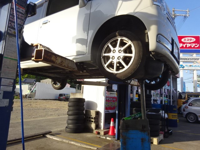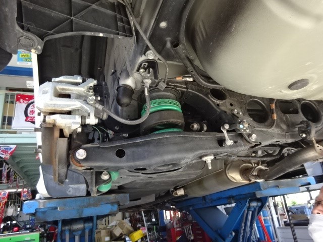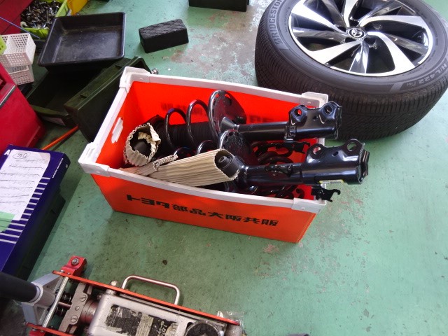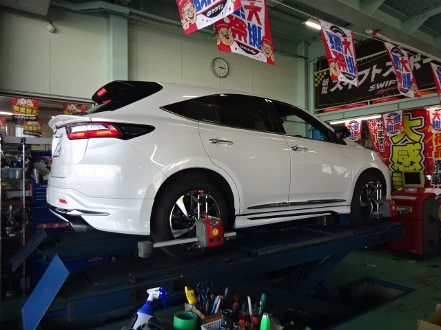 トヨタディーラー様からの依頼で、中古で売れたハリアーの足回りをノーマルに戻す作業です。