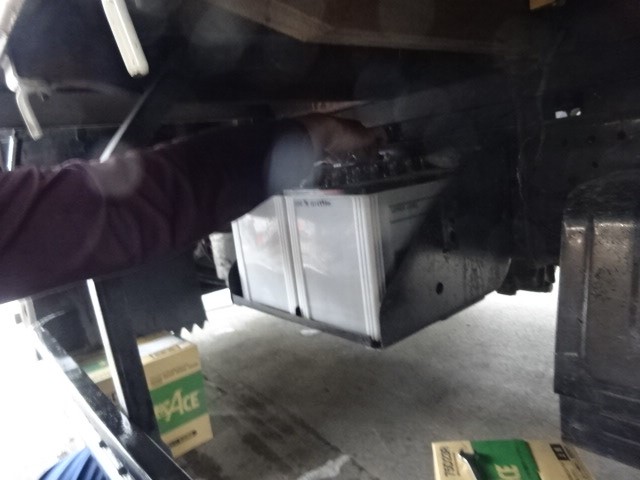 車検を通して来たトラックのバッテリー交換します。