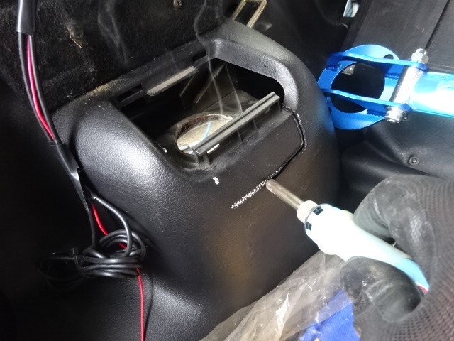クスコのタワーバー追加です。内張切り落として行きましす。