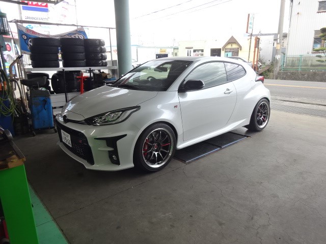 デモカーノGRヤリスに265/35R18を入れるとフェンダーに接触するので、タイヤサイズ変更します。