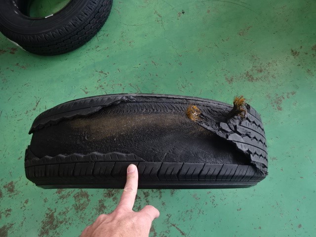 200ハイエースのお客様休暇中にタイヤのバーストで驚いたそうです。