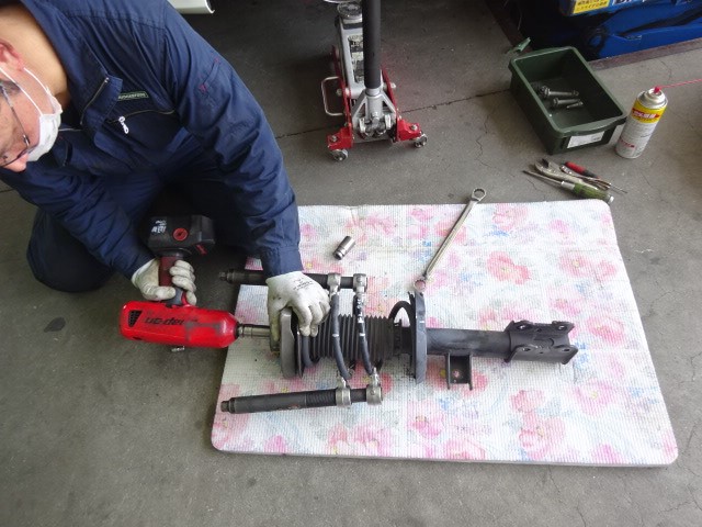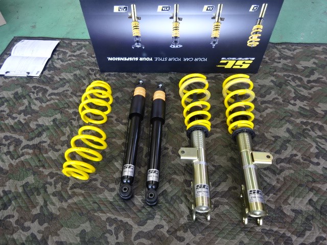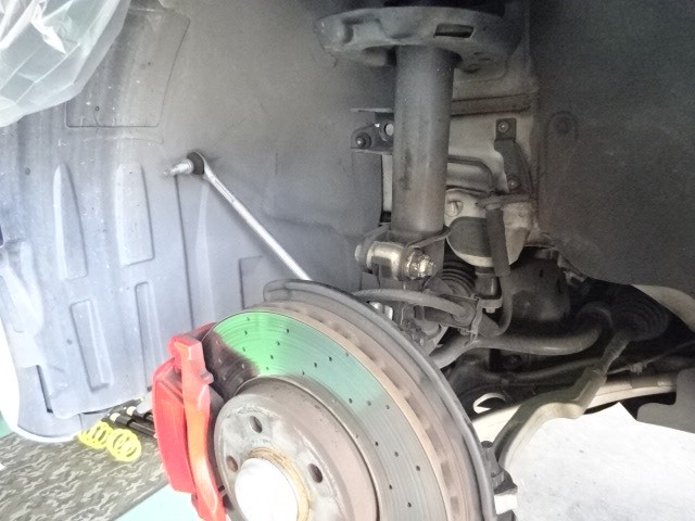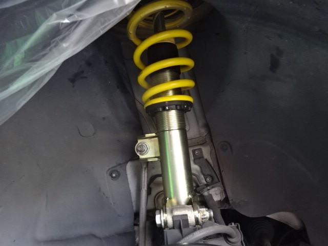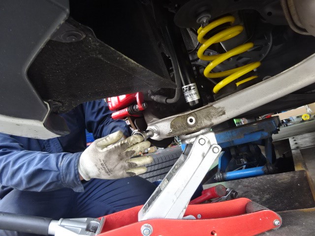 ベンツA180にお乗りのお客様にKWのサスペンションキットSTの取り付け作業です。
