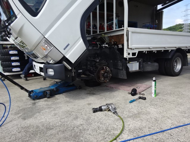 トラックの夏タイヤに履き替えです。ついでにオイル交換も させて貰います。