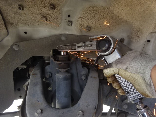 フロントの頭のネジが固着で、緩まないので、削り落とします。