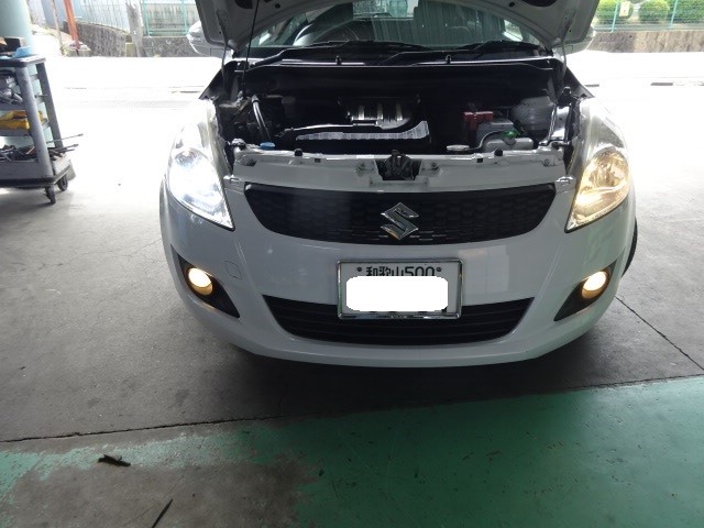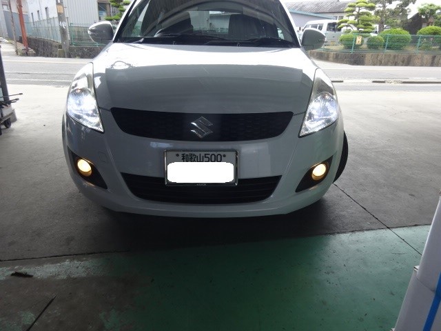 スイフトのお客様、ヘッドライトのバルブを持って来たLEDに換えて欲しいとの事。