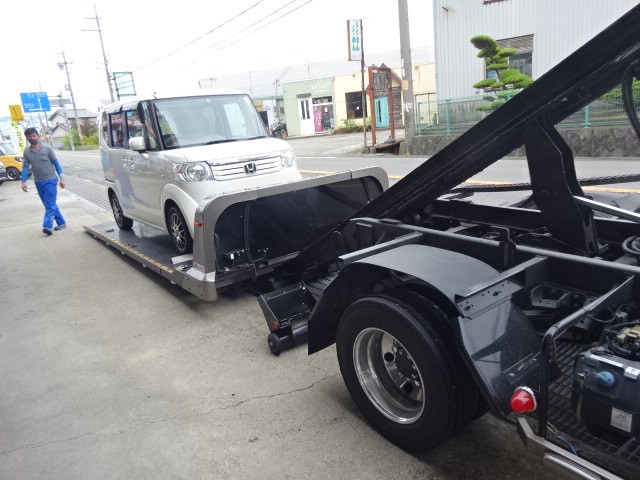 N-BOXのお客様、ロードサービスにてご来店パンク修理で治りましたよ。