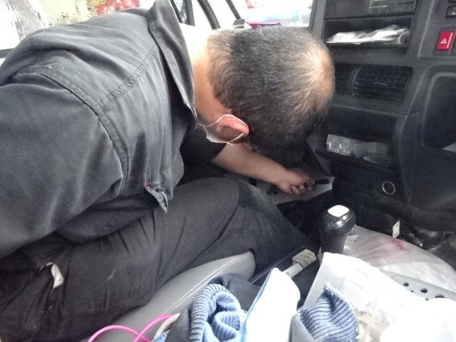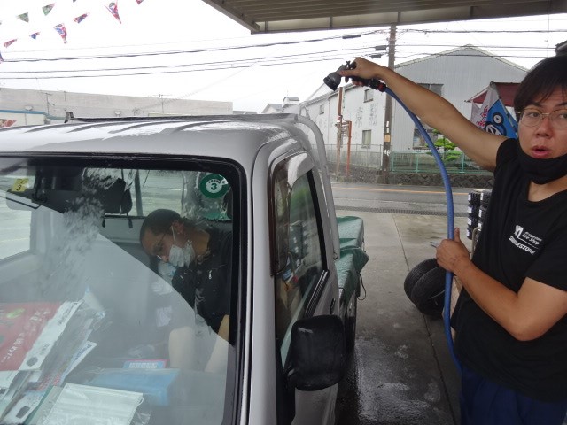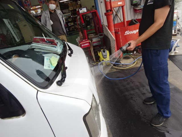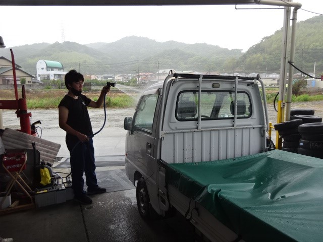 エールレンズ交換で、ご来店のサンバートラックのお客様「雨降ったら、足元濡れてるねん」
