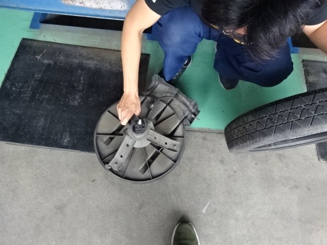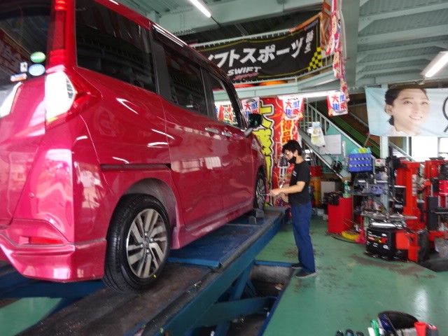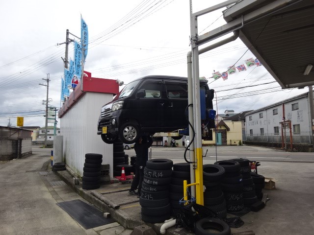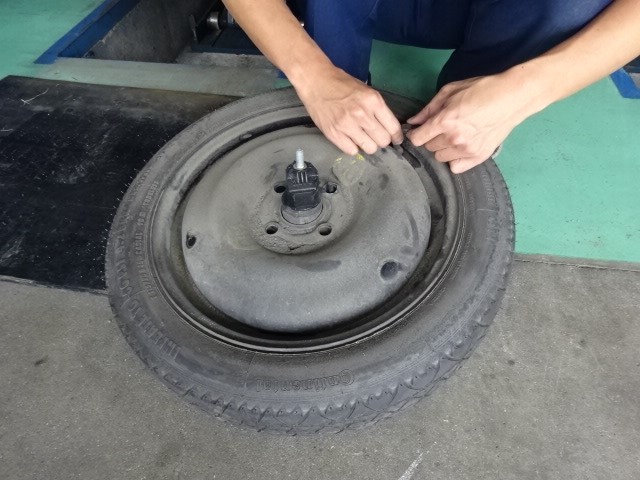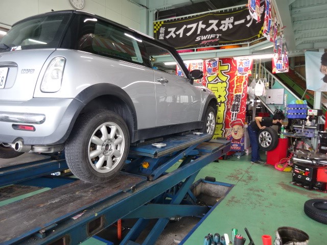 前輪バーストのミニのタイヤ交換です。作業には問題なかったのですが。