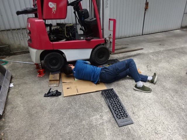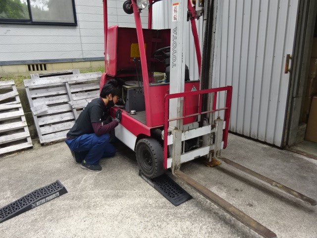 先日 出張でバッテリー交換したフォークリフトのセルモーターが、届いたので、交換に大ちゃんと行きます。
