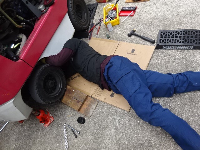 車高が低いので、出来るだけ、ジャッキアップしての作業になります。