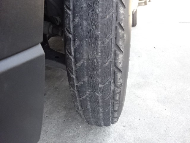 左の前輪をヒットしたらしくトーが、開き過ぎで、スペアータイヤが、こんな感じ・・・