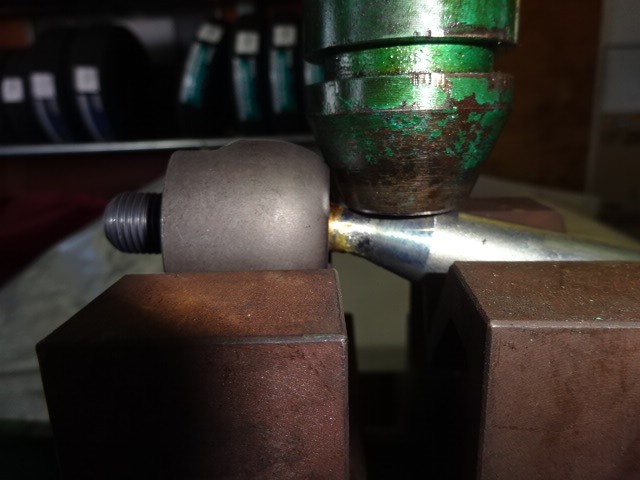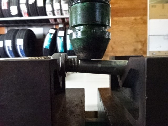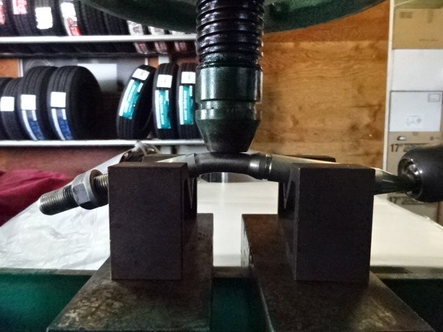 このままでは修正できないので、外してプレスに掛けます。Zに曲がっています。