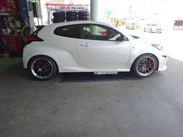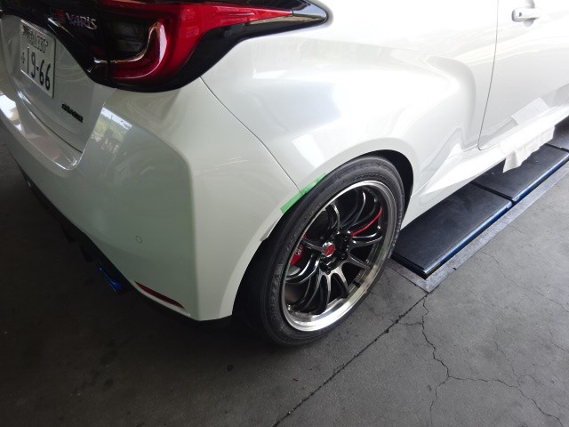 デモカーのGRヤリスに9.5j-18+38を245/40R18で履いているのですが、多少のフェンダー加工も行ったのに、タイヤが、フェンダーに当たります。