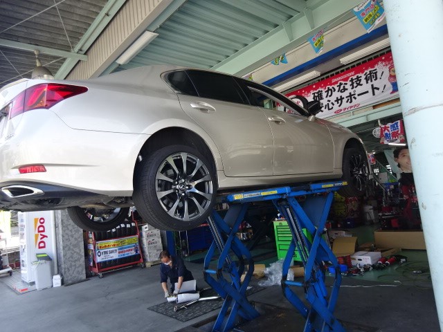 レクサスGS350に一カ月半待ったトムスのバレルマフラーを装着します。