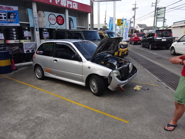 なにやら駐車場でバンパー外して作業中の方が・・・