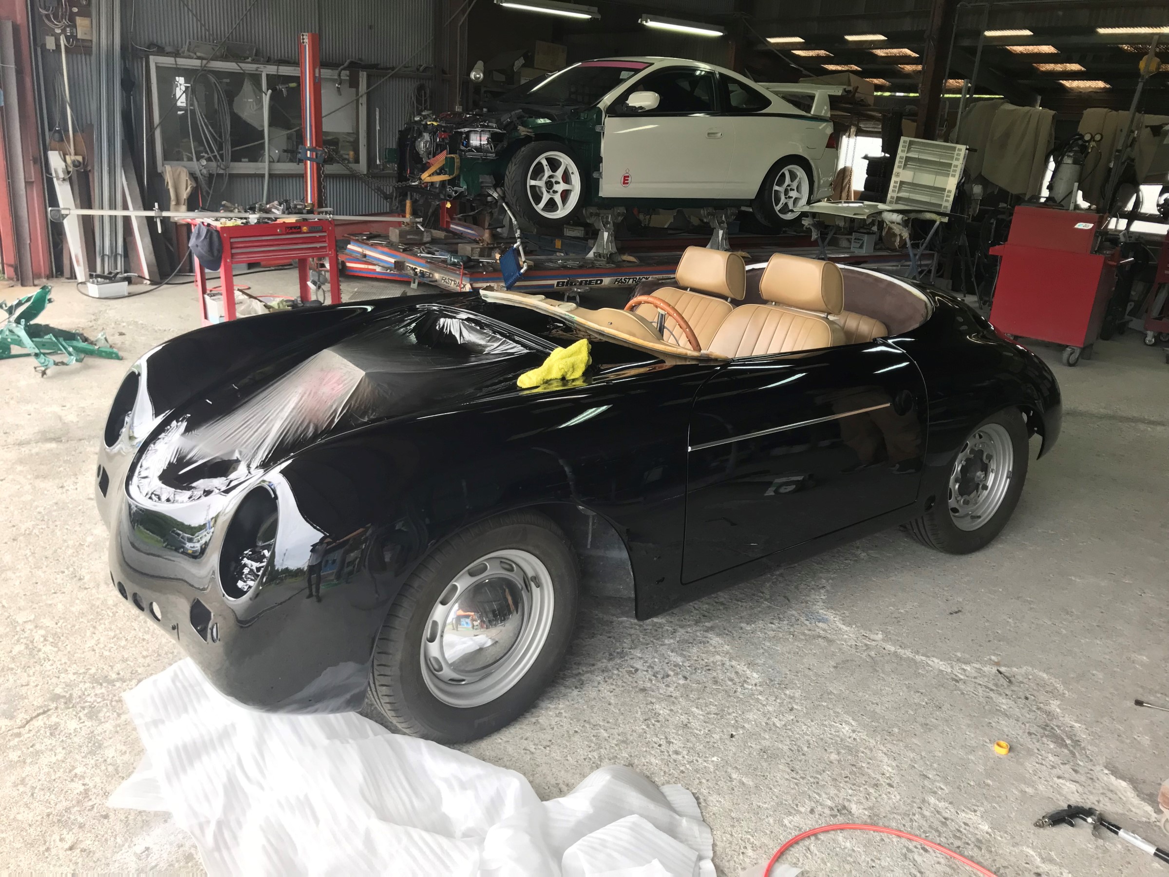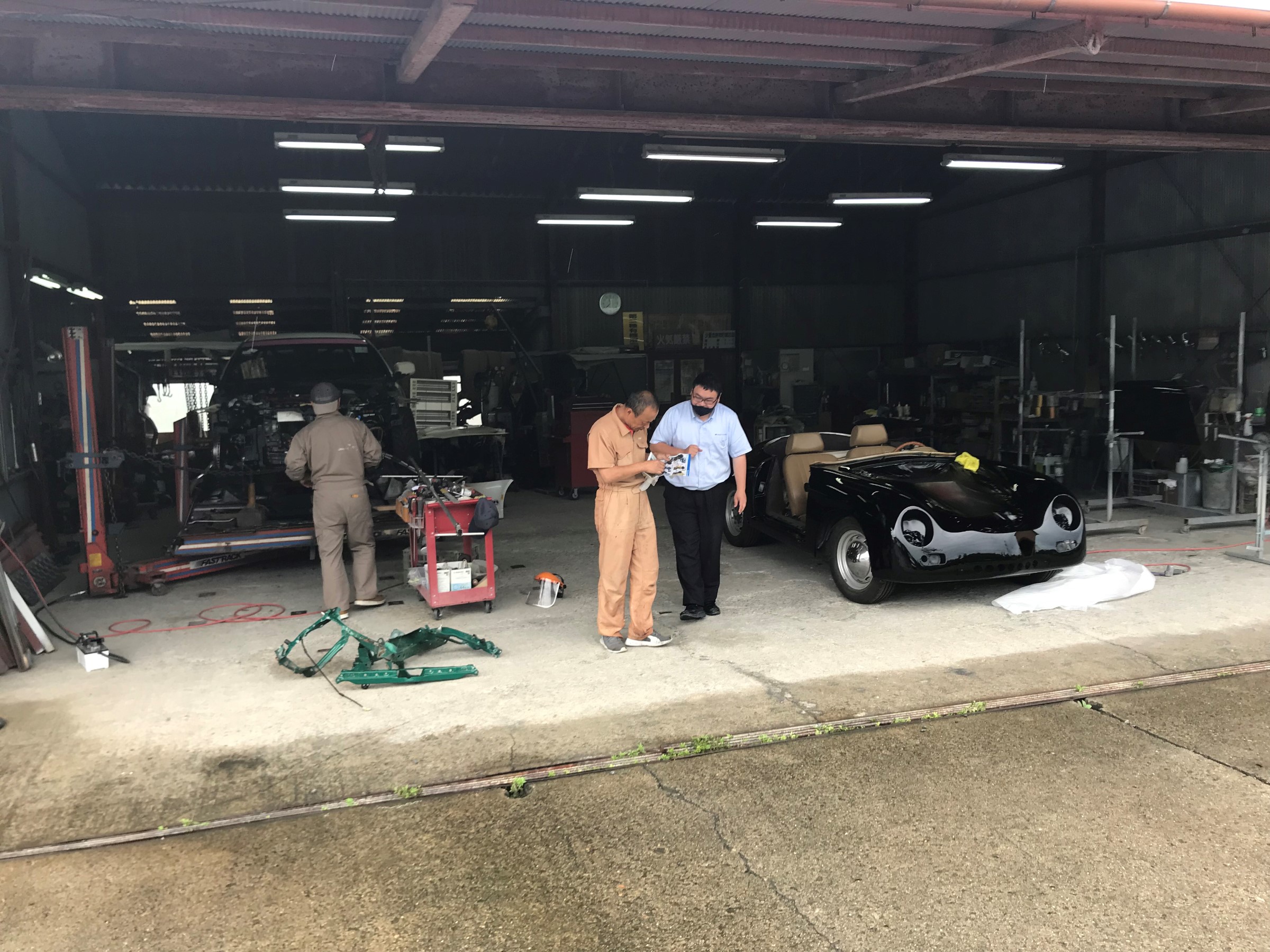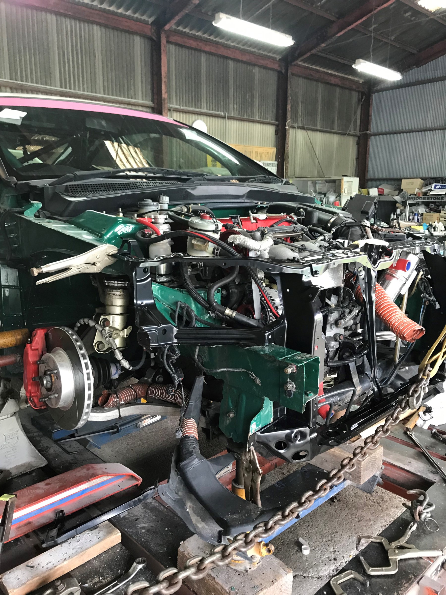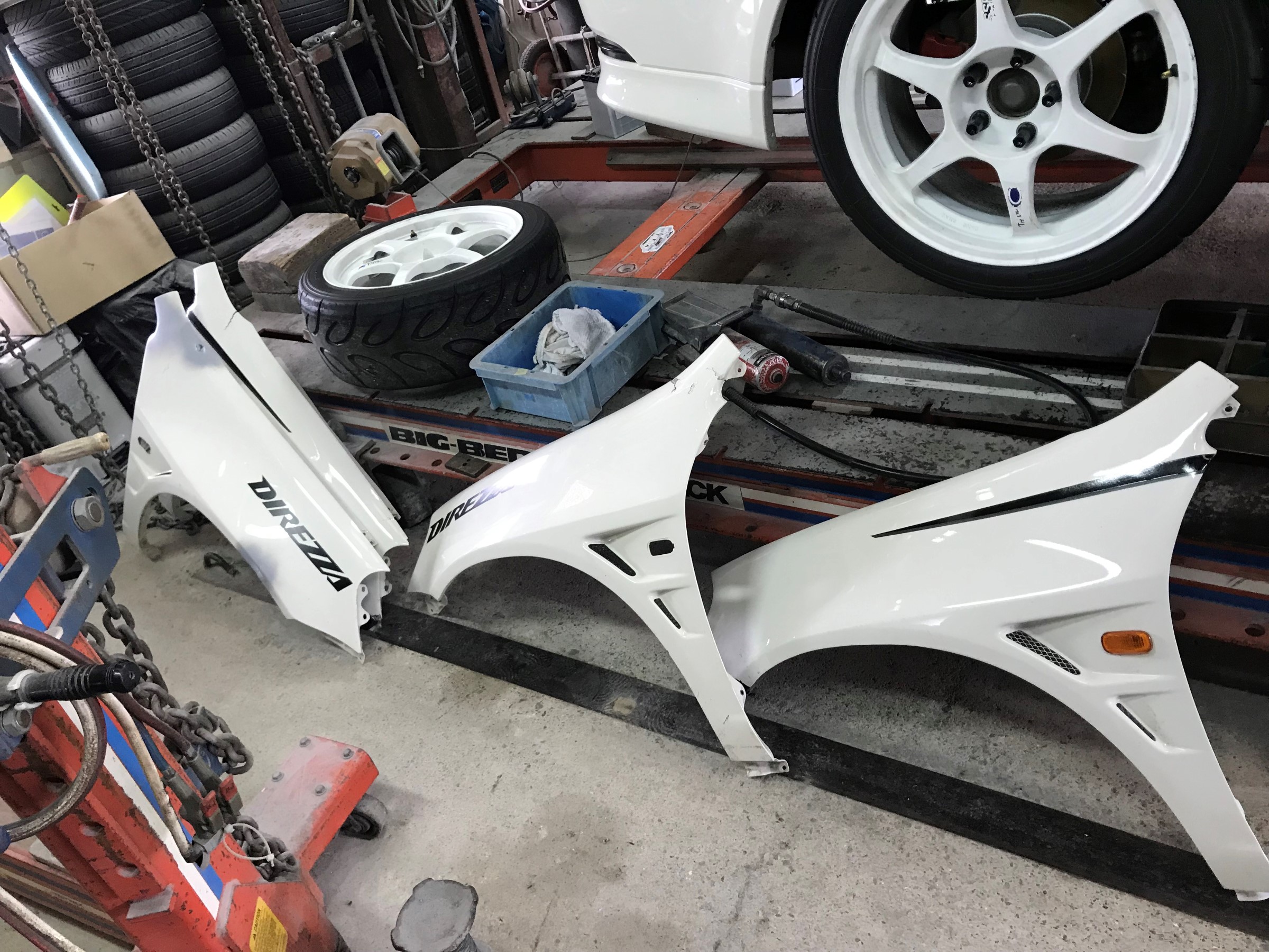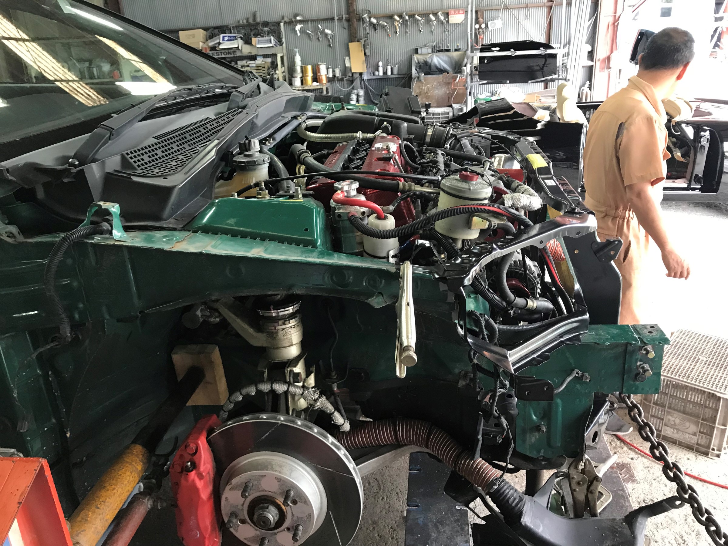 先日 鈴鹿ツインサーキットにて、クラッシュした、DC5 知人(達人)の鈑金屋さんに入庫したと情報が入ったので、手土産持って挨拶に・・・
