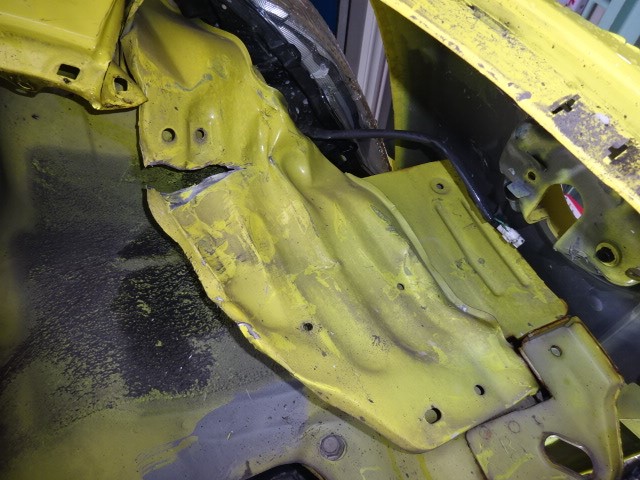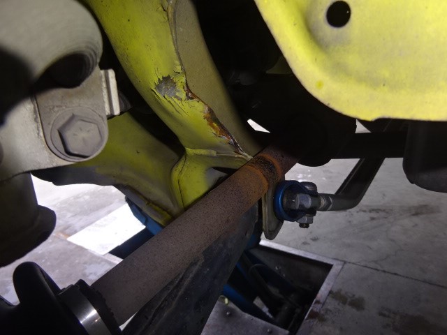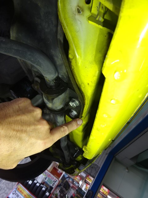 メンバーが曲がったので、タイヤが、後ろに下がってドライブシャフトが、シャーシに当たったのですね。