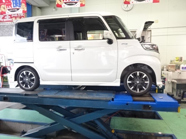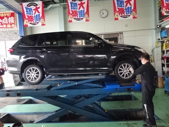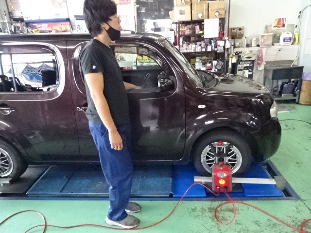 キューブのお客様が「タイヤのうち減りが酷いのでどうにかして~」一度アライメント調整することになりました。