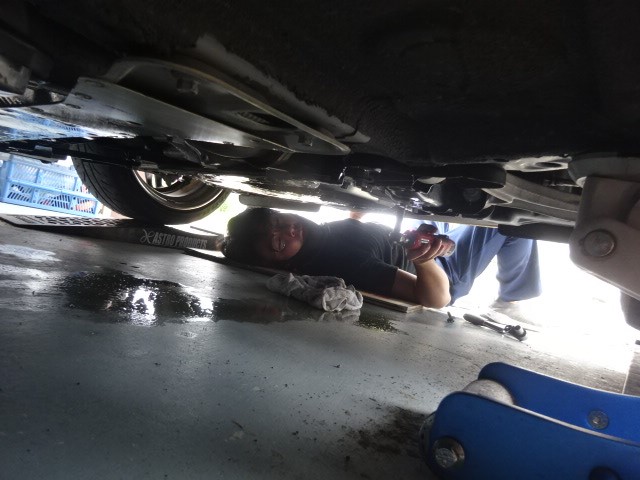 適量を注入後、漏れ箇所と漏れる量を確認してからガレージの掃除をして~店へ持って帰ります。