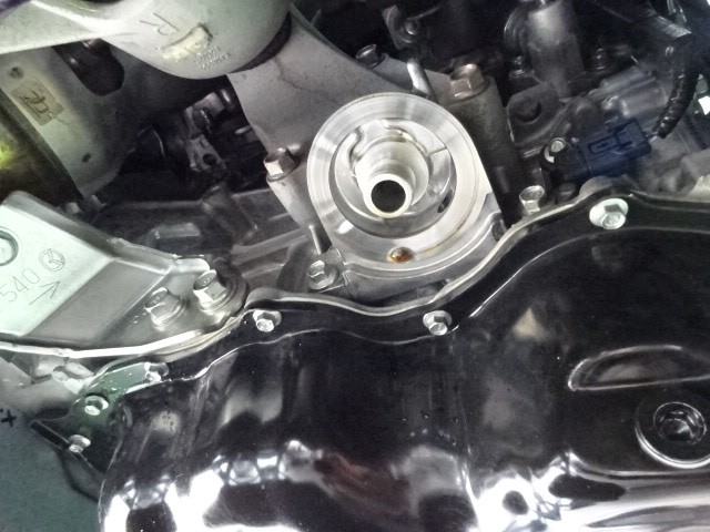リフトに上げ点検して診ると、エレメント付近からの漏れと判明締め加減も問題なし???