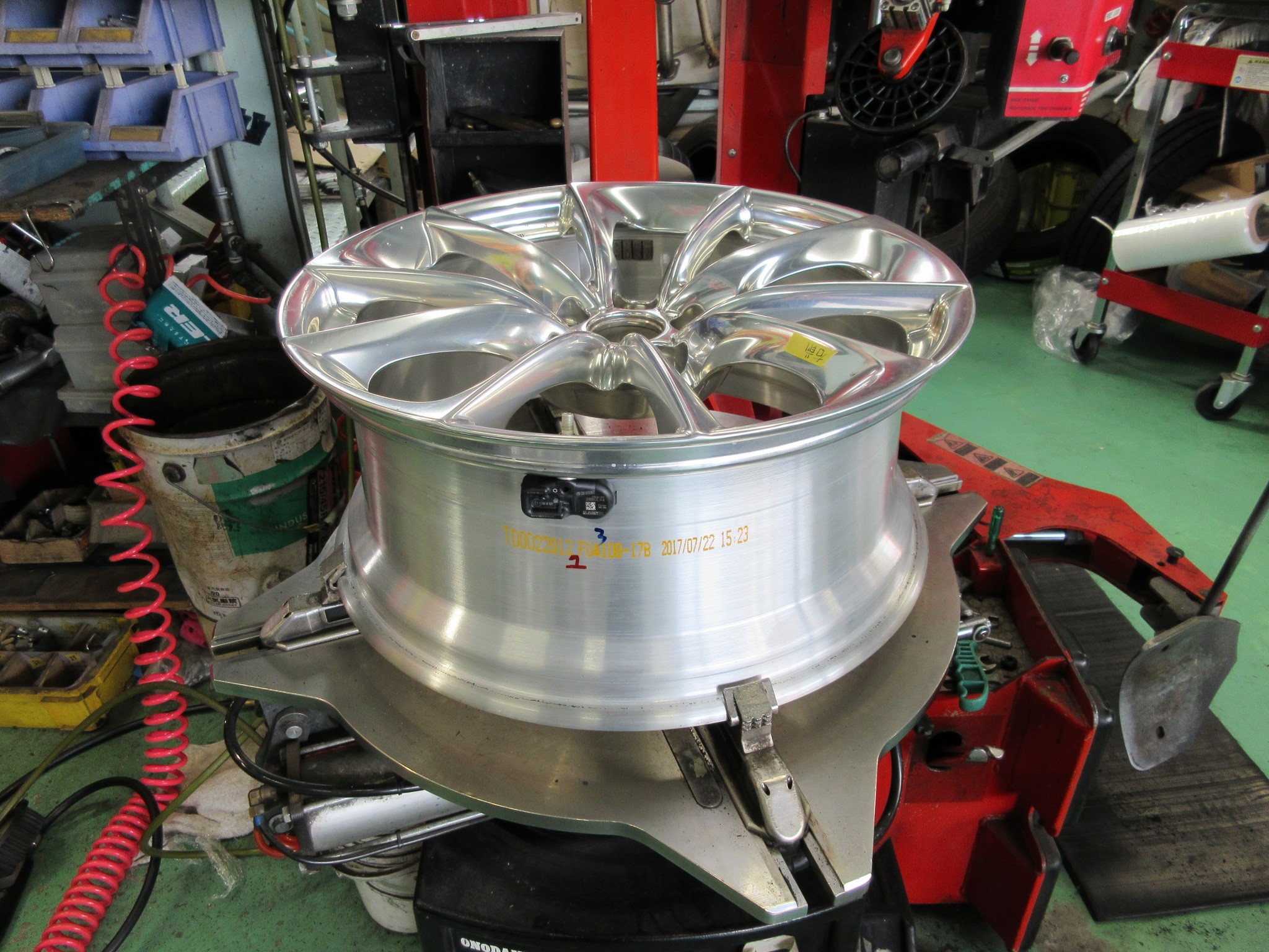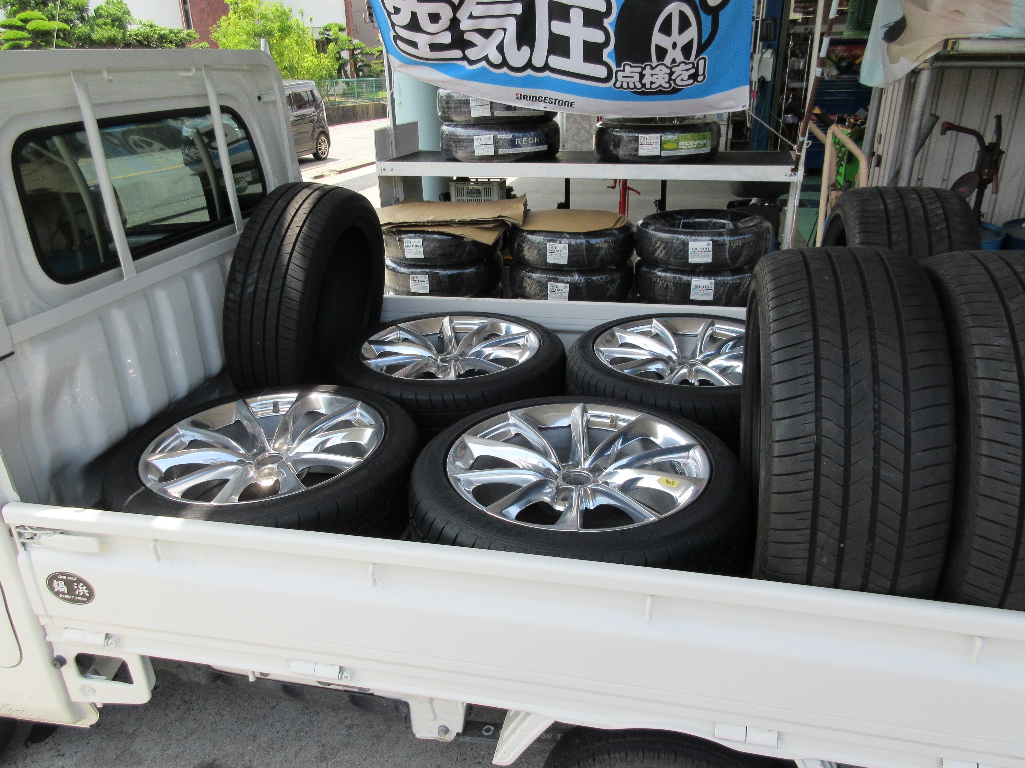 お客様、ご自分で装着されるそうなので、軽トラで引き取りに来てくれました。