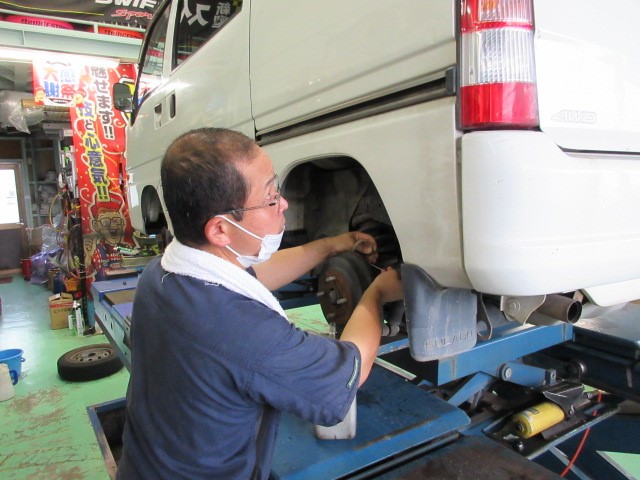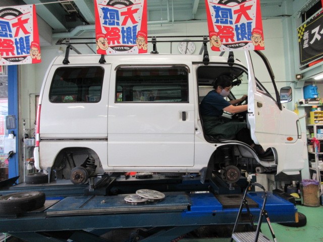 サンバーバンの車検整備です。ダイちゃん頑張ってます。