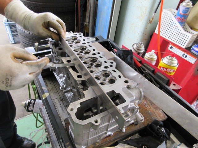 ヘッド編です。汚れやガスケットのカスも綺麗に出来たので、歪みが無いか、ストレートゲージを当て、シグネスゲージで、測って行きます。