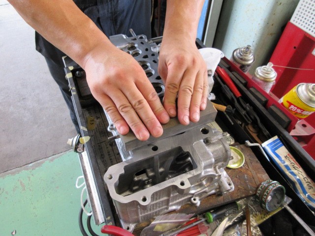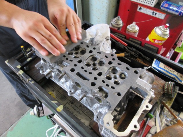 タコ棒とコンパウンドで、バルブの摺合せして行きます。16本も有るなんて・・・