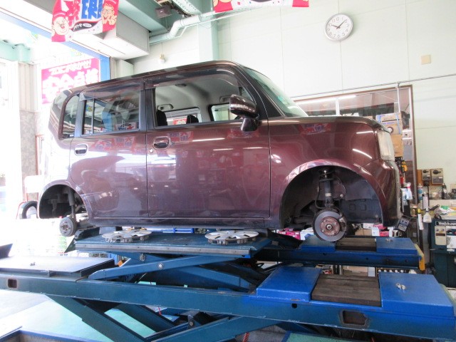 ワゴンRのタイヤ交換時にブレーキパットの摩耗を発見。