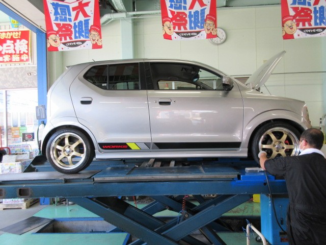 ハイラックストラックの納車です。車高が決まったら、アライメント調整しましょうね。