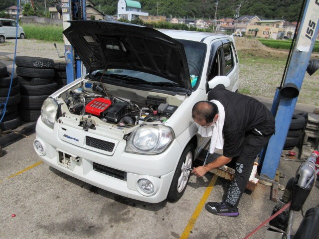 こちらは、Keiワークスのオートマチックの載せ替え作業の終盤です。