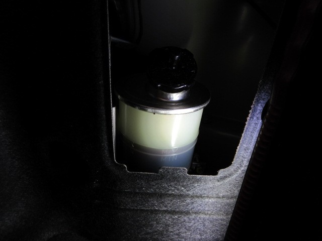 下調べしていると、パワーステアリングオイルの油面低下でも点灯するらしいので点検