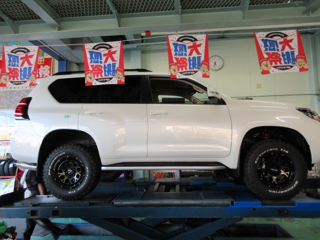150プラドの車高上げです。