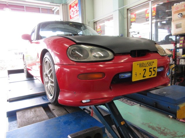 お客様が、代車にカプチィーノを指名して来たので、ガレージから出して、点検します。