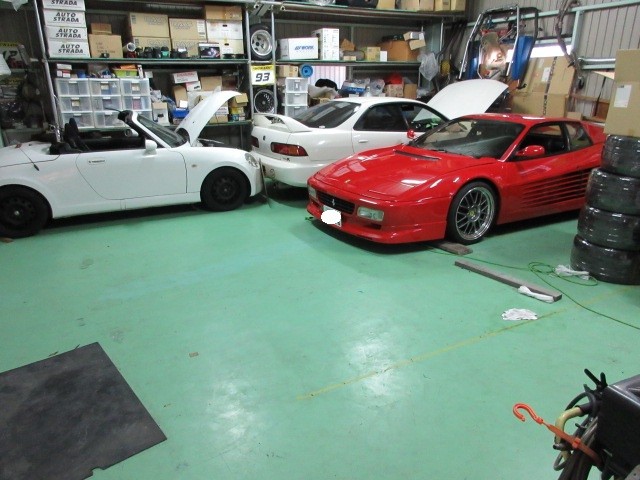 カプチィーノとタントを出して隙間ができたので久しぶりにフェラーリ512TRのエンジンに火を入れようと思ったら、バッテリー上がちゃってました。