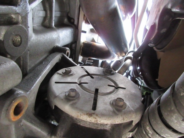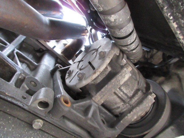 次にエアコンコンプレッサーに当たって抜けないのでコンプレッサーずらします。